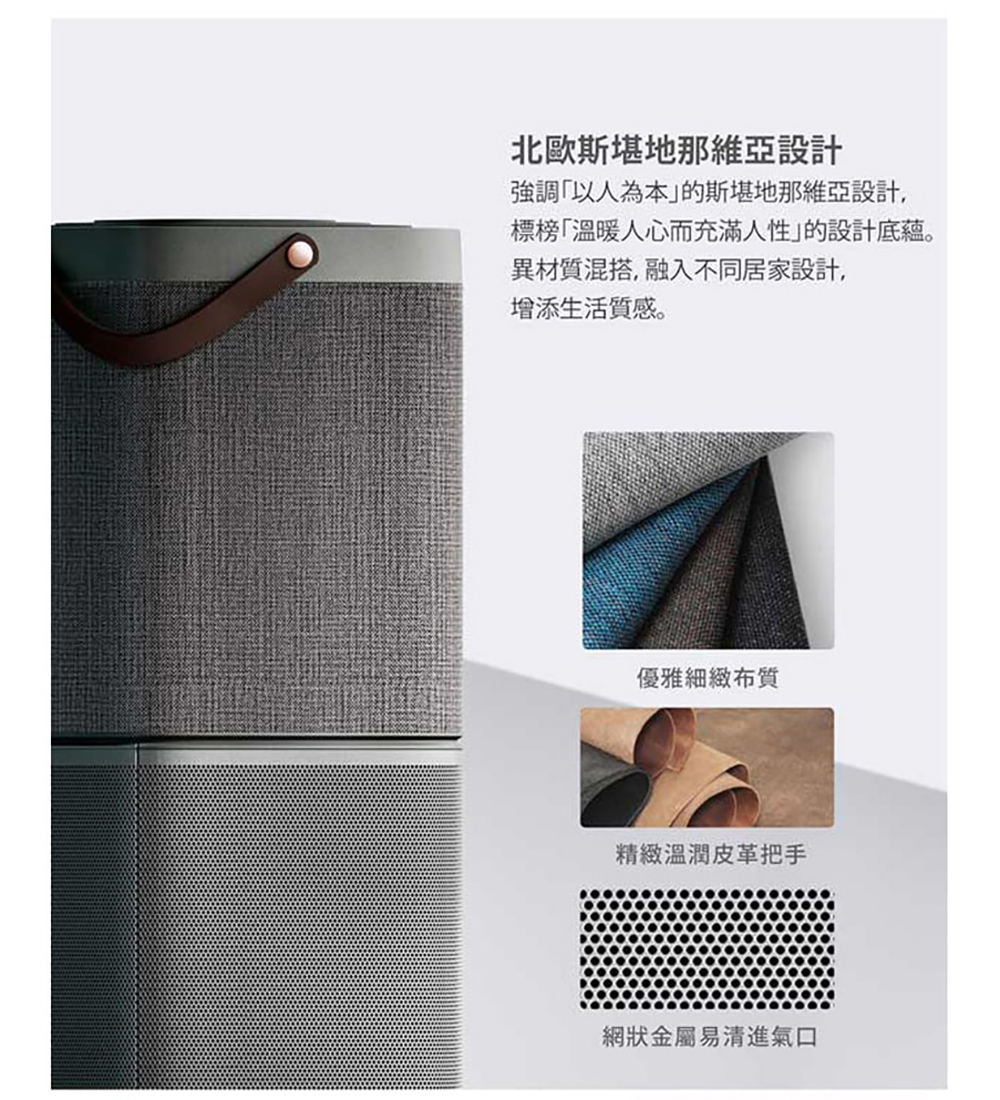 靜音滾輪、布質拼貼機身、皮革把手等貼心設計