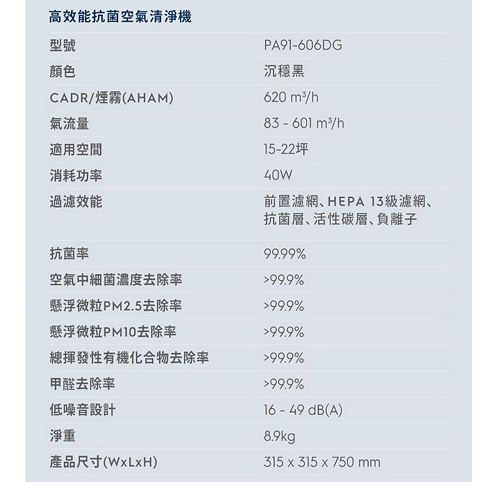 高效能抗菌空氣清淨機 Pure A9_PA91-606DG