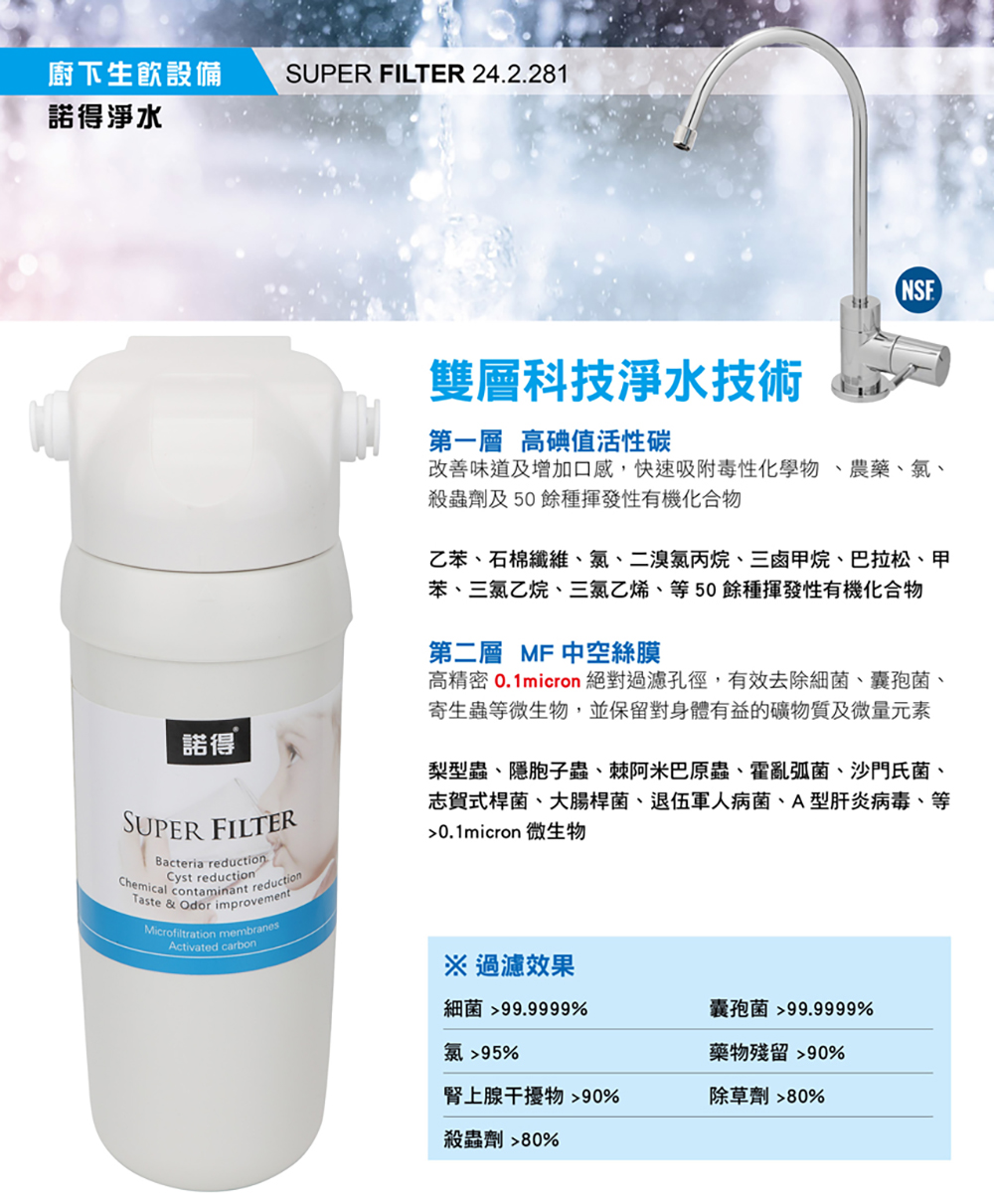 材質成份第一道 PP纖維、第二道 MF中空絲膜/高碘值活性碳
